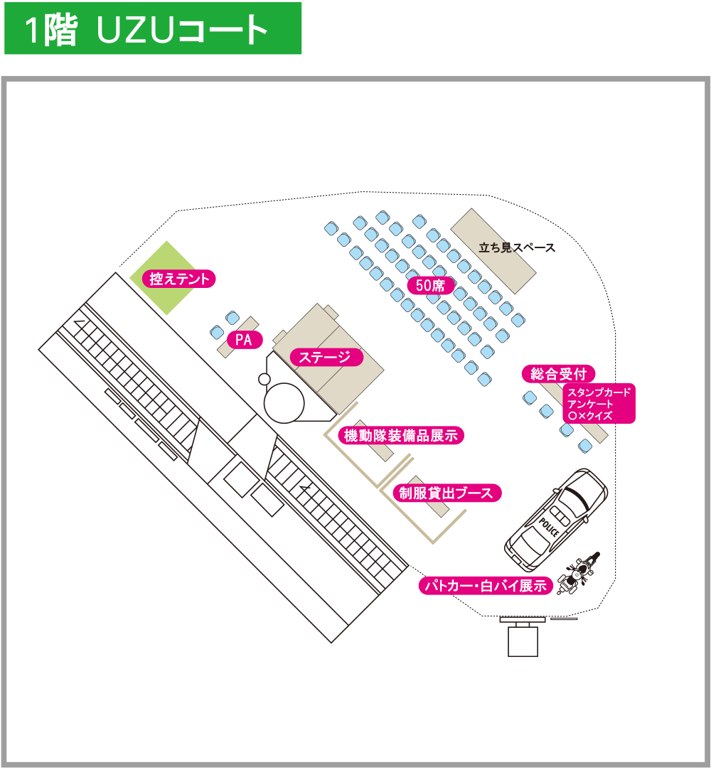 2026年2月7日(土)、イオンモール徳島 1階UZUコートと4階イオンホールにて、警察官の仕事が体験できるイベント『ポリスフェスティバル2026』を開催します。1階ではパトカー・白バイ展示・音楽隊による演奏・ポスターコンクール表彰式・機動隊装備品展示などのみんなが楽しめるイベント、4階では参加自由の職業体験コーナーと、要事前申込みの『こども警察官 事件捜査体験』をおこないます。なお、4階のイベント参加は小学生のみとさせていただきます。